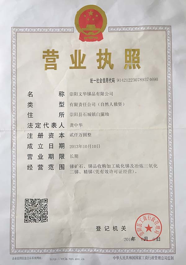 崇陽文華銻品有限公司位于全國化工之鄉湖北省咸寧市崇陽縣,面臨107國道、京珠高速公路,具有得天獨厚的地理優勢,為公司的發展提供了便利條件。
